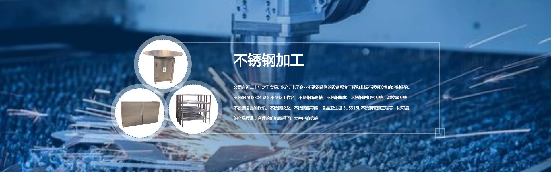 我公司有近二十年對于食品、水產、電子企業不銹鋼系列的設備配套工程和非標不銹鋼設備的定制經驗。不銹鋼SUS304系列不銹鋼工作臺、不銹鋼消毒槽、不銹鋼拖車、不銹鋼進排氣系統、溫控室系統、不銹鋼食品輸送機、不銹鋼絞龍、不銹鋼儲存罐,食品衛生級SUS316L不銹鋼管道工程等,以可靠的產品質量,合理的價格贏得了廣大客戶的信賴。